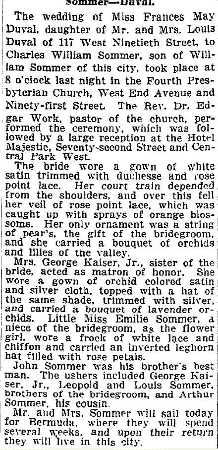 November 21 Charlotte’s parents, Theresa Leicht and William Sommer, were married at St. Paul’s Lutheran Church, 6th Ave & 15th Street, New York City.