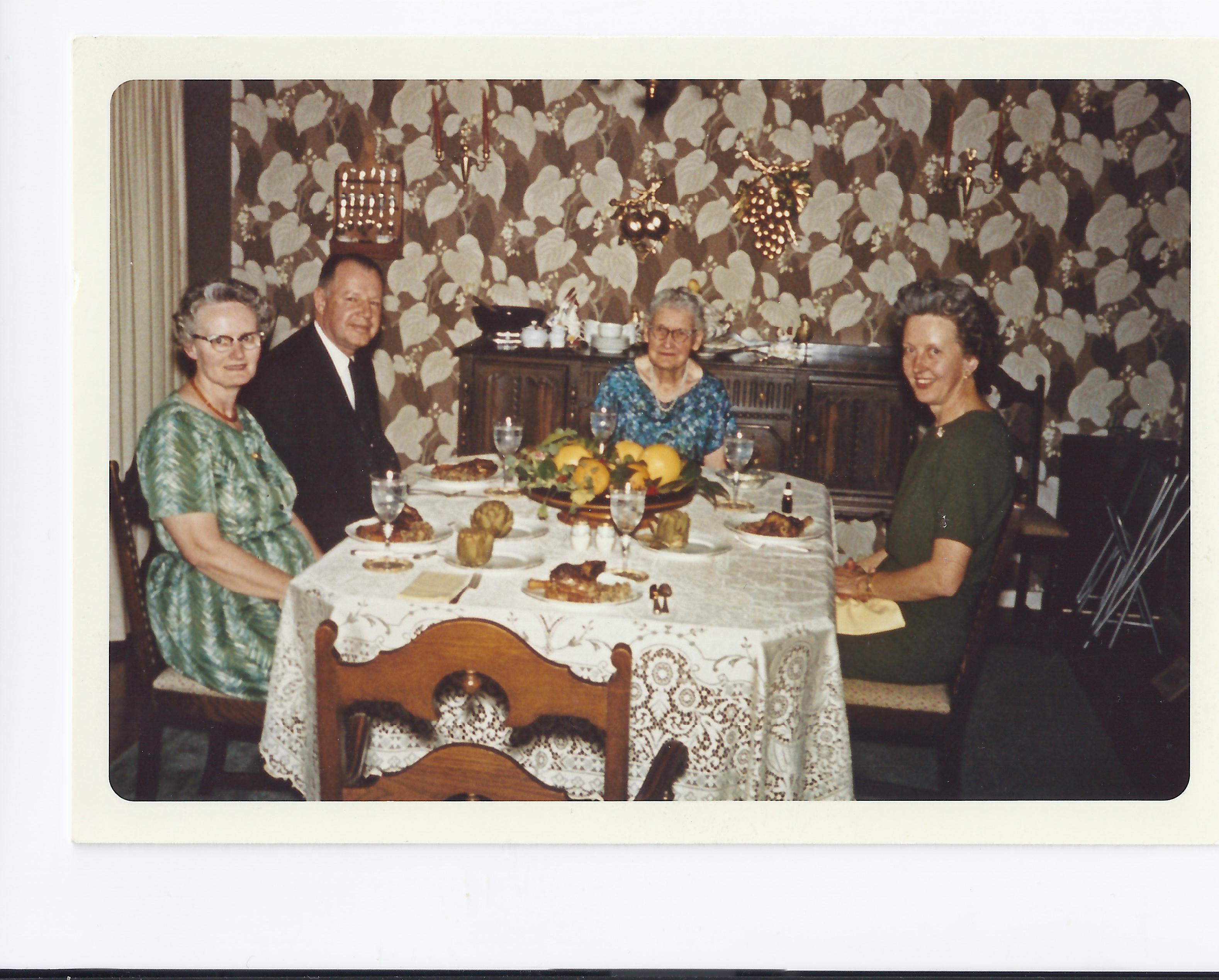 Hattie sits at the head of the table with her son Paul and his wife Lola on either side of her. Also present is Martha Eissfetlt who was a long time friend of the family. I have heard Martha referred to as a friend of Maxine but I have no knowledge of their relationship.