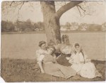 This photo from circa 1907 shows Hertha in a scarf with her father’s cousins, Emily and Wilelmina in back.